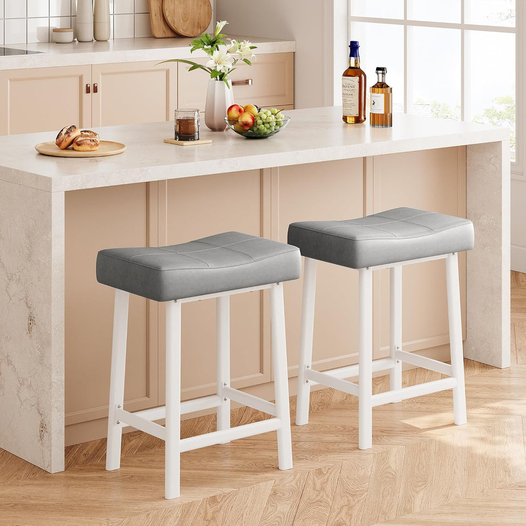 【High-Quality PU Leather Material】The backless seat of the counter height bar stools are made of stain and scratch-resistant PU leather with soft foam cushion. Quality anti-scratch PU leather keeps your seat protected, which is waterproof and durable. Integrated foot plugs can prevent easy detachment and scratching of the floor.