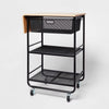 Metal-frame storage cart with wooden top