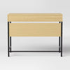 Lend a touch of mixed-material decor to your workspace or study area with the Mixed Material Writing Desk from Room Essentials™. This rectangle writing desk features a drawer to help keep your notebooks and other essentials organized. Designed with a metal frame, this writing desk has a wooden tabletop in a natural shade to complement your aesthetics.