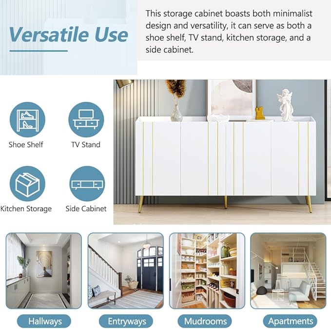 This storage cabinet boasts both minimalist design and versatility, it can serve as both a shoe shelf, TV stand, kitchen storage, and a side cabinet. Its space-saving vertical handleless design fits perfectly in hallways, entryways, mudrooms, and apartments, keeping your home tidy.