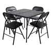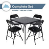 When you’re looking for quick, comfortable, and easy table space and seating, the Peakform 5-Piece Folding Table and Chair Set has everything you. With one table and four chairs, you can have everyone gathered together and ready for your next meal, game night, party, or meeting. The vinyl padding on each piece provides long-lasting comfort, and the steel frame of the table and chairs creates a sturdy support. All five of the items fold flat for easy setup and storage, so getting started and cleaning up is a breeze. With a simple black design, this set will look great anywhere. Whenever you need extra table space and seating, look no further than this complete set.