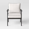 This Searsburg Aluminum Deep Seating Club Chair in Black from Threshold™ will be your favorite cozy chair on your patio or porch. Made from black weather-resistant, powder-coated aluminum, this single club chair for one is padded with a 100% polyester cushioned seat and backrest that are each covered in white fabric for contrast and comfort.