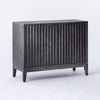 Spruce up your existing decor while adding subtle storage space with the Thousand Oaks Wood Scalloped 2-Door Cabinet from Threshold™ designed with Studio McGee. This elevated yet warm cabinet with scalloped doors lends charming texture and inviting appeal to any space. The two-door cabinet with a matte black finish has covered shelves that keep clutter out of sight, and it looks beautiful set against a wall or window with a lamp and other decorative accents set atop it.