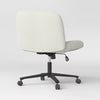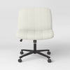 Upgrade your home office space with this Upholstered Armless Office Chair with Metal Swivel Base from Room Essentials™. This upholstered, armless office chair is crafted with a wooden frame and features crisscross fabric upholstery with a padded seat and back for comfy seating. The swivel mechanism lets you rotate the chair 360 degrees, while the casters at the base allow for easy maneuverability. Plus, you can adjust the height with a lever to customize the chair to your liking.